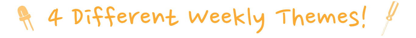 Pick one theme or try all four – each day kids will get to build and decorate a unique robot and take it home with them for more fun and learning!