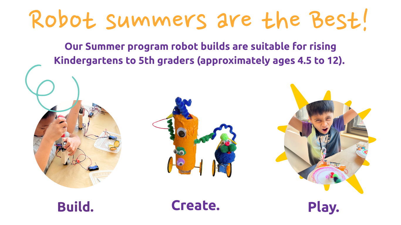 Each week of this popular Summer Circuits program features a cool theme, with special robot projects, crafts, games, outside time, and more awesomeness. Yes, kids will learn about circuitry, express their design & art skills, and other STEAM-tastic wonders, but most of all they’ll get silly and have a great time!
